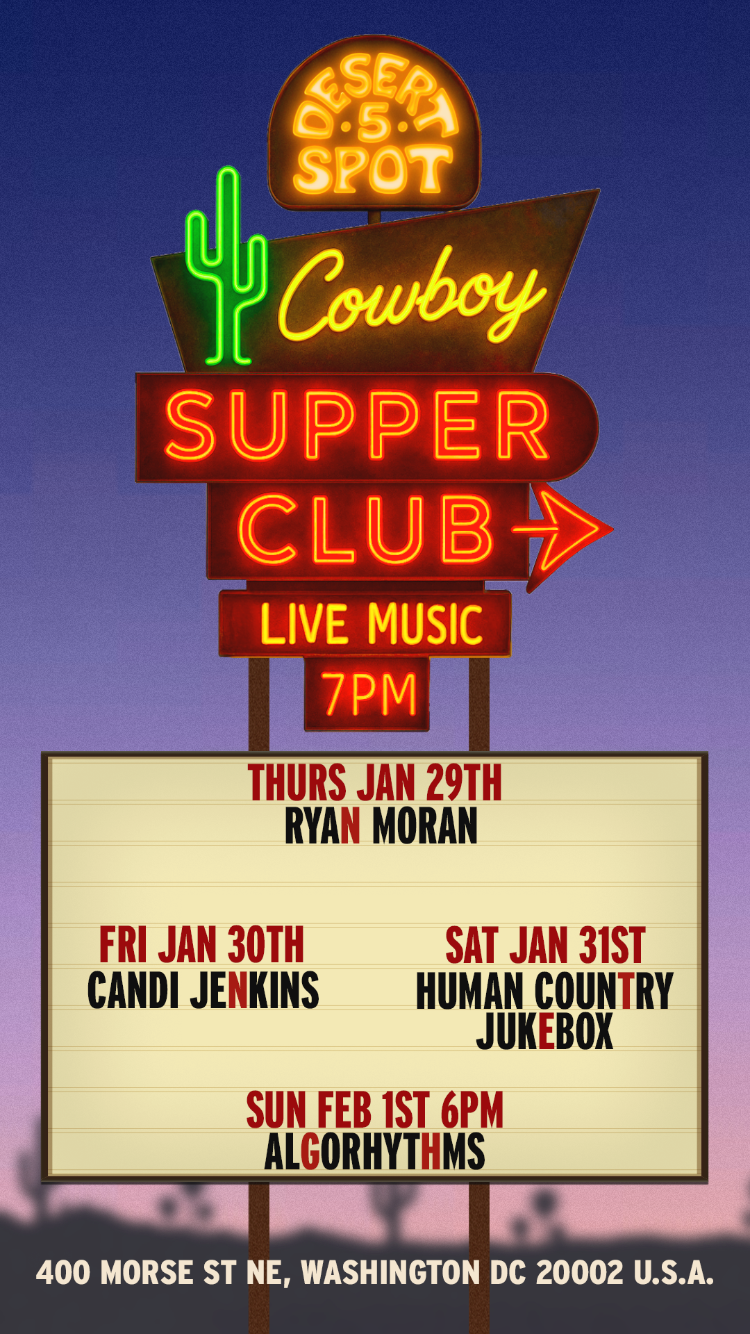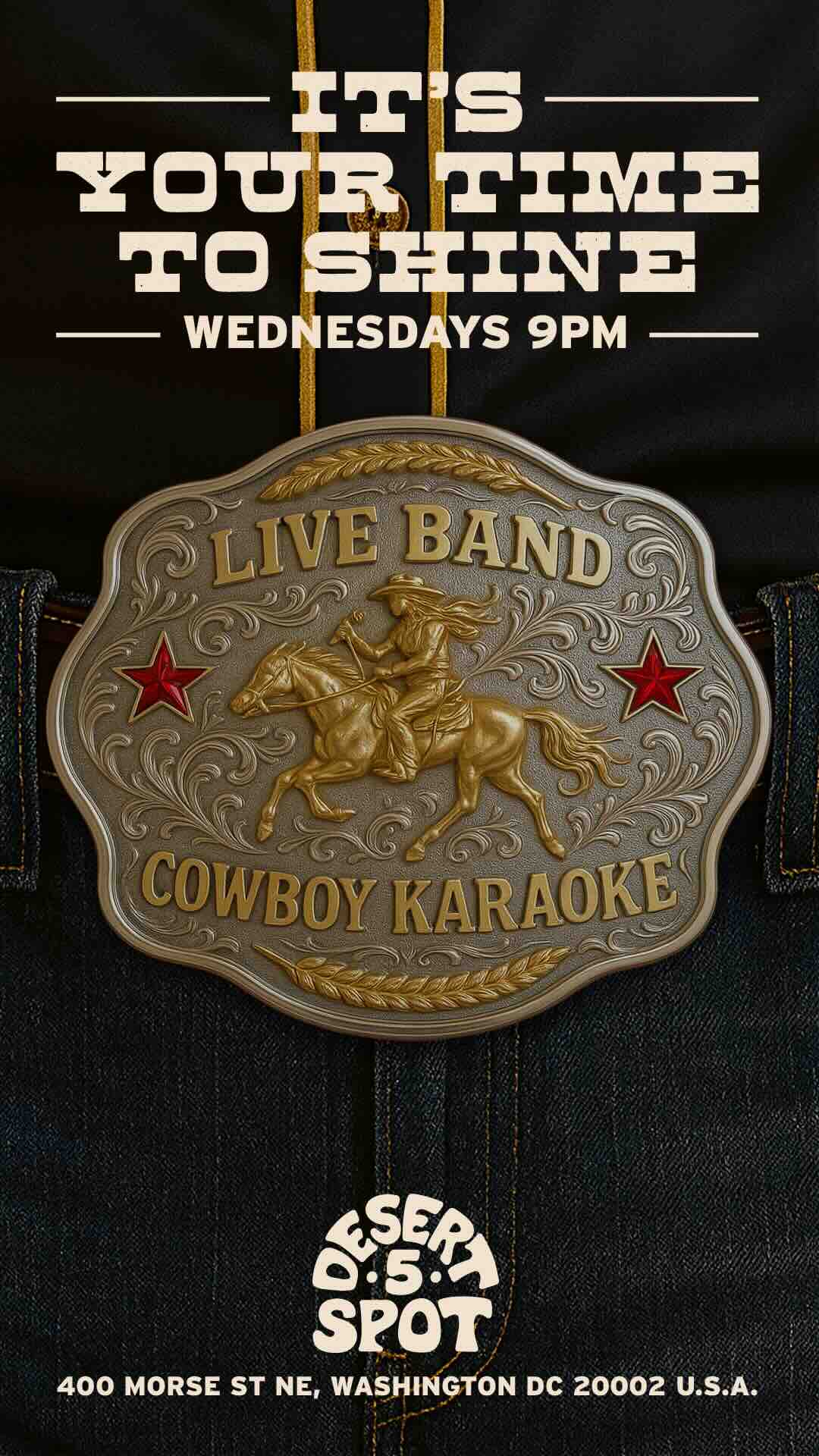 We kindly ask y'all to abide by the cowboy dress code at Desert 5 Spot. Cowboys Don't wear athletic shorts, athletic tops, sweatpants, or flip-flops.