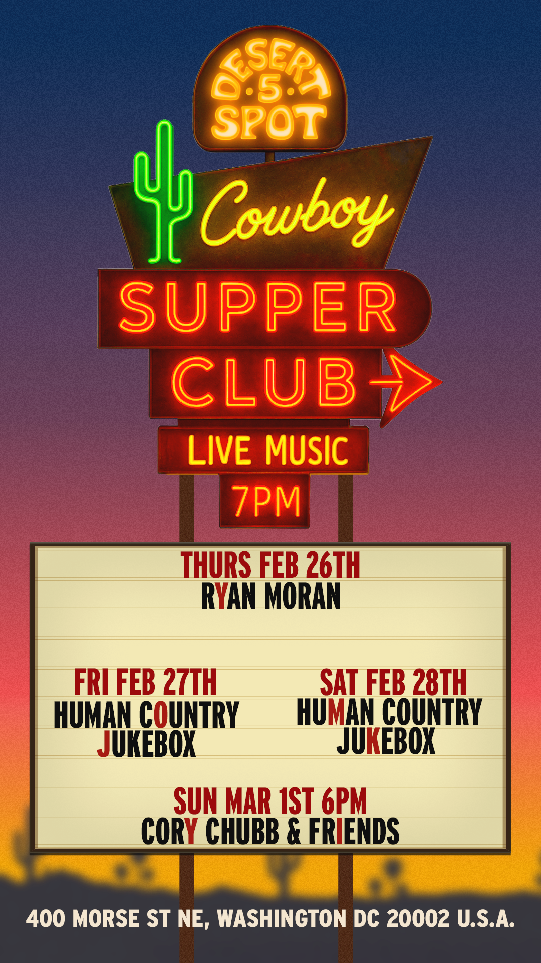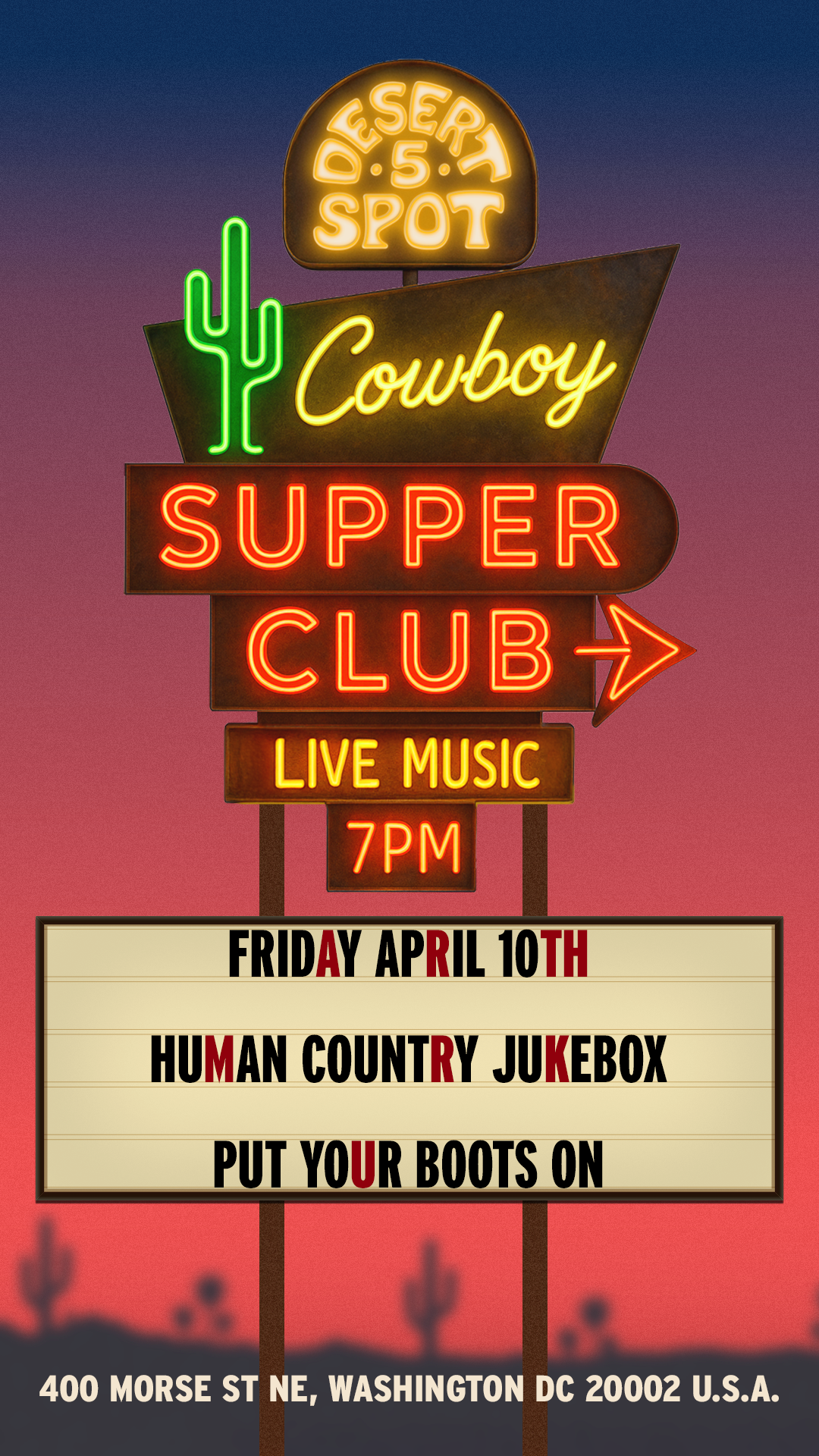 We kindly ask y'all to abide by the cowboy dress code at Desert 5 Spot. Cowboys Don't wear athletic shorts, athletic tops, sweatpants, or flip-flops.