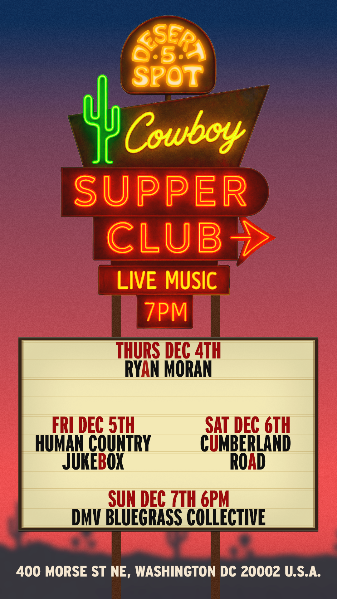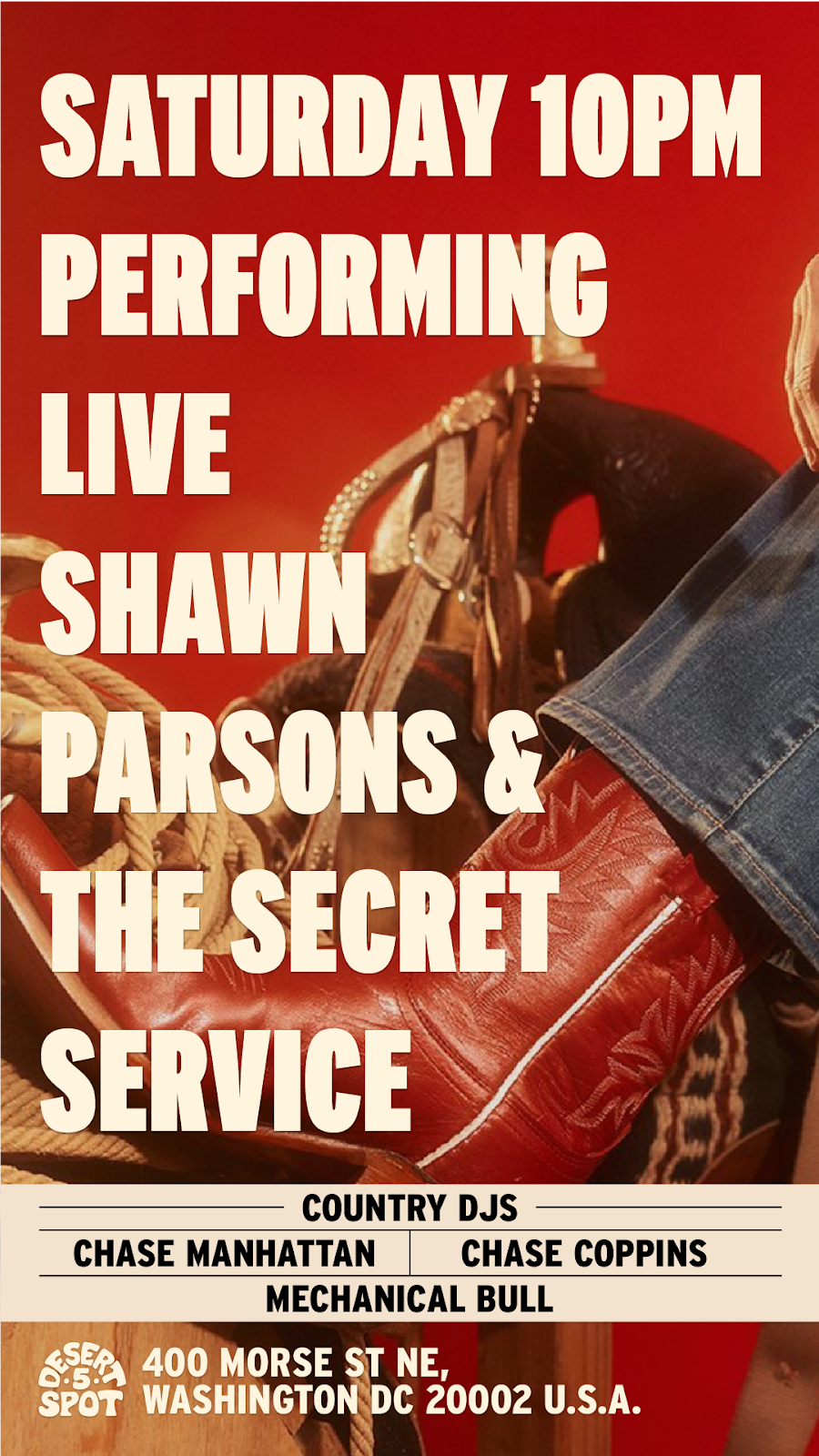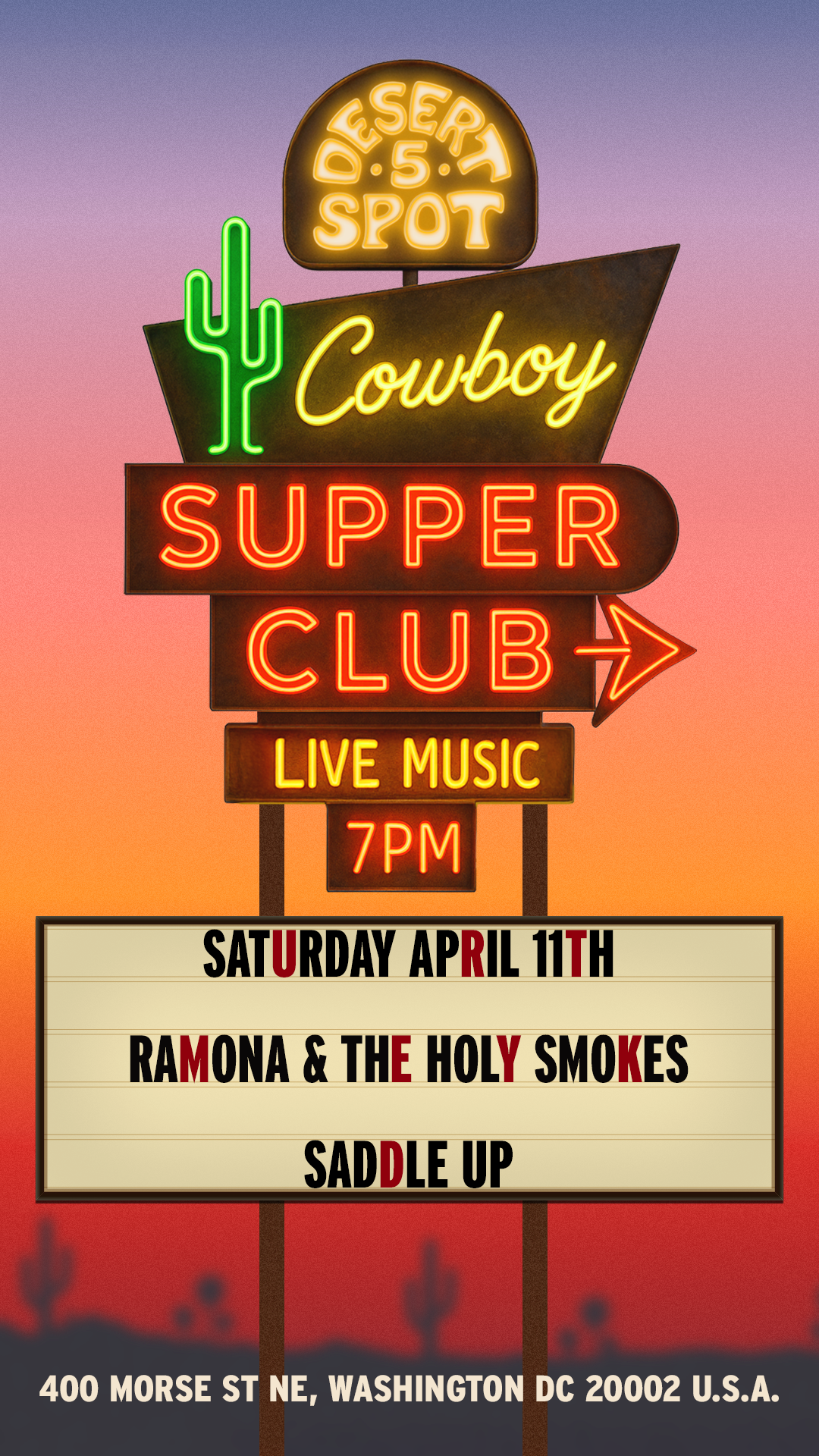 We kindly ask y'all to abide by the cowboy dress code at Desert 5 Spot. Cowboys Don't wear athletic shorts, athletic tops, sweatpants, or flip-flops.