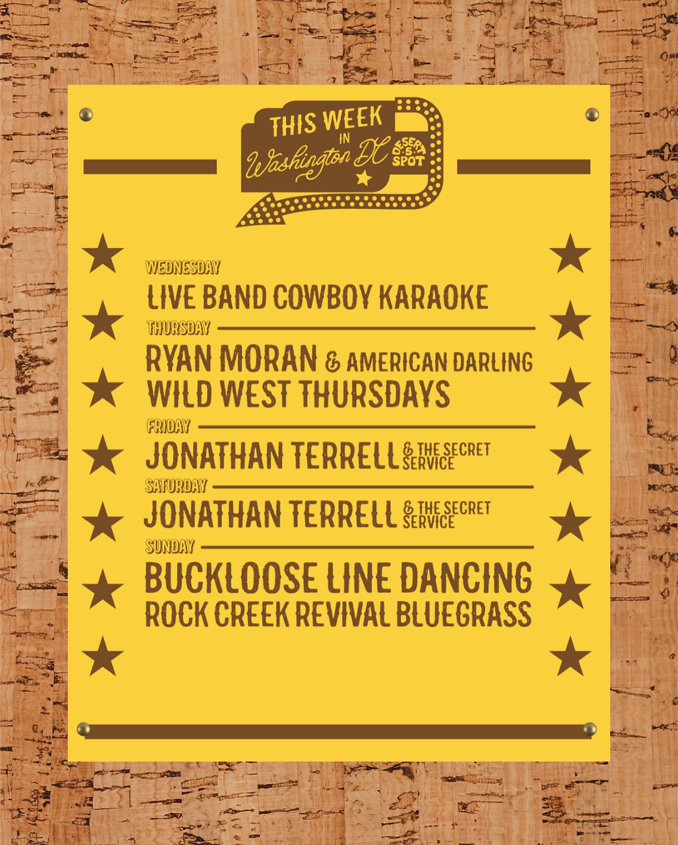 We kindly ask y'all to abide by the cowboy dress code at Desert 5 Spot. Cowboys Don't wear athletic shorts, athletic tops, sweatpants, or flip-flops.