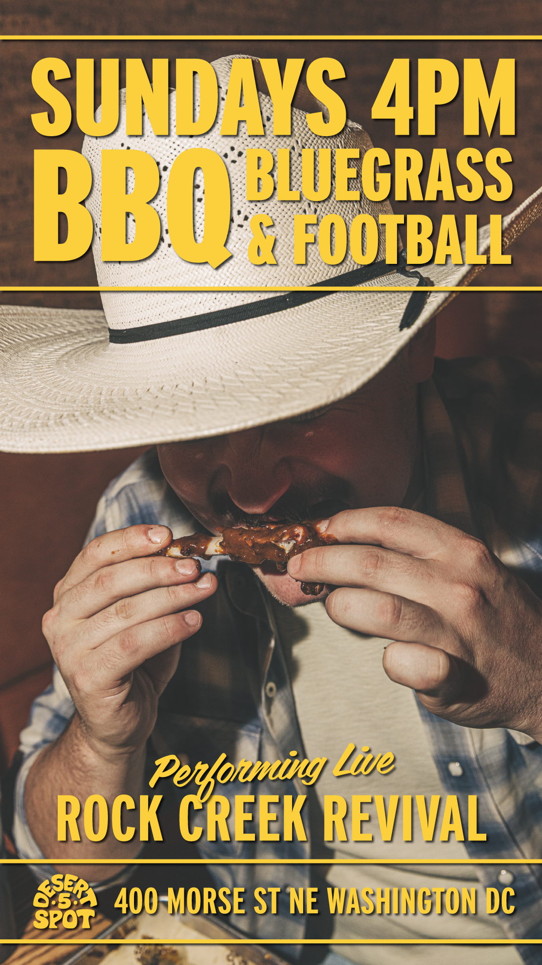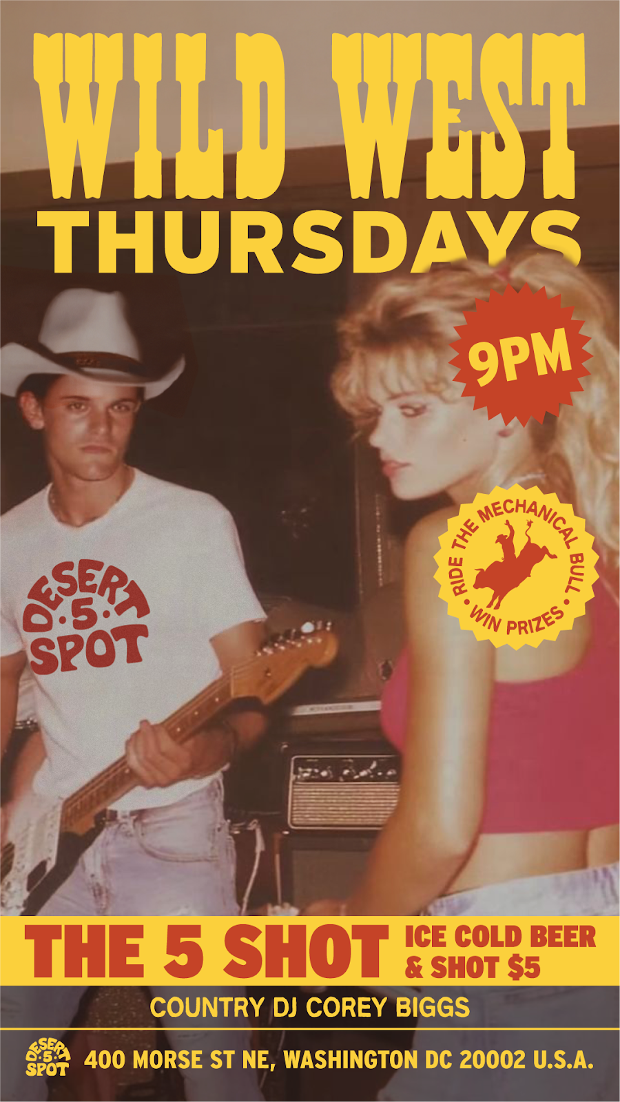 We kindly ask y'all to abide by the cowboy dress code at Desert 5 Spot. Cowboys Don't wear athletic shorts, athletic tops, sweatpants, or flip-flops.