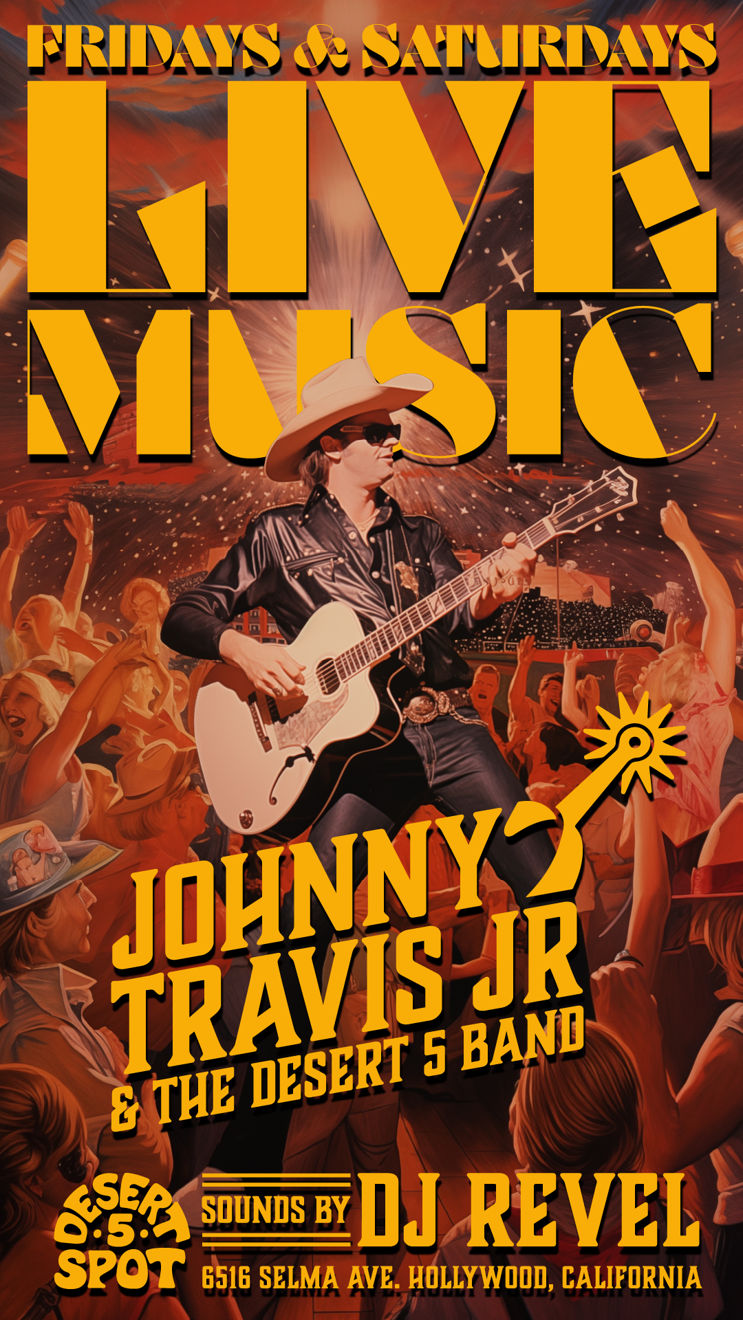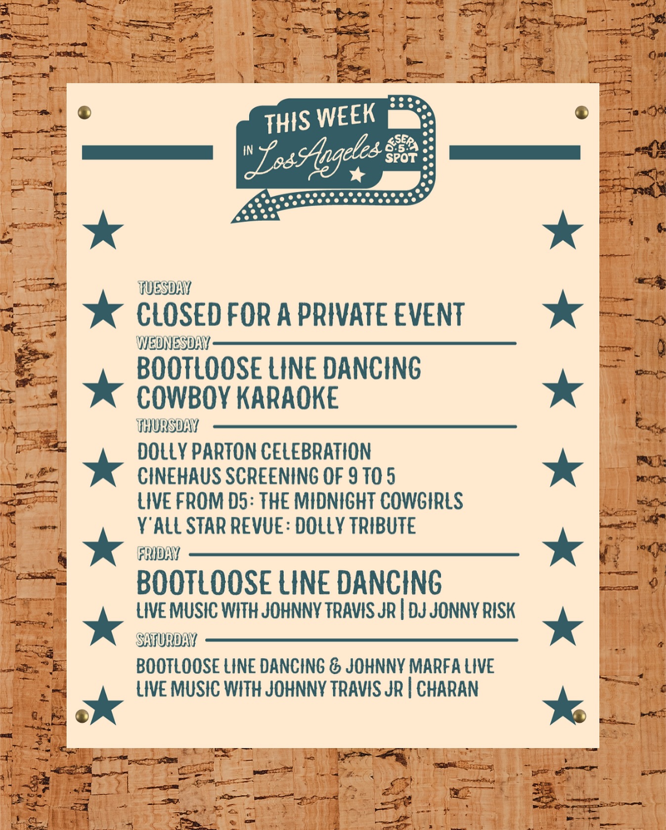 We kindly ask y'all to abide by the cowboy dress code at Desert 5 Spot. Cowboys Don't wear athletic shorts, athletic tops, sweatpants, or flip-flops.